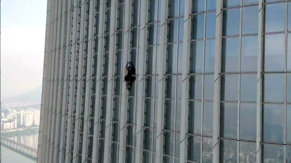 وقال مسؤول في الشرطة الكورية الجنوبية: «اضطر موظفو البرج إلى الصعود بواسطة سلة محمولة لإقناعه بالتوقف، بينما كان لا يزال عند الطبقة السبعين من المبنى».