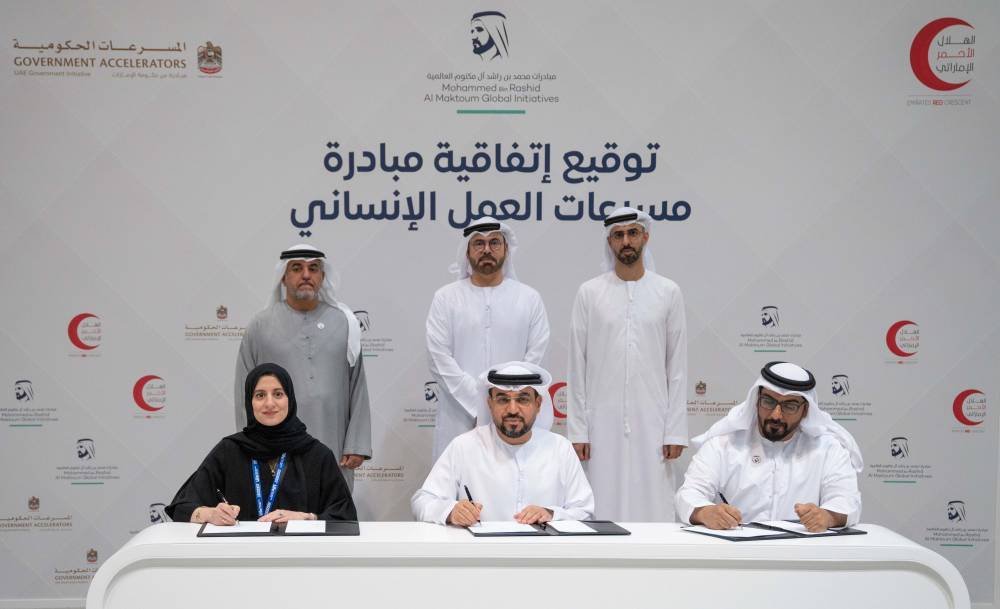 وتم توقيع المذكرة من قبل سعيد العطر، الأمين العام المساعد لمؤسسة محمد بن راشد آل مكتوم العالمية، وحمود عبدالله الجنيبي، الأمين العام المكلّف لهيئة الهلال الأحمر الإماراتي، وهدى الهاشمي، مساعد وزير شؤون مجلس الوزراء لشؤون الاستراتيجية.