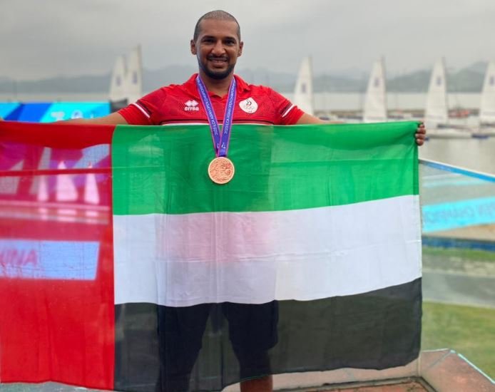 وأشاد رئيس اتحاد الإمارات للشراع والتجديف الحديث بعطاء بطلنا عادل خالد والذي حقق الكثير من الانجازات على الصعيدين العالمي والاقليمي مؤخرا حيث نجح في الحصول على 3 ميداليات عالمية هي برونزية وفضية العالم ألكا 7 ماسترز 2022 و2023 وبرونزية العالم ألكا 6 عام 2023 ليحقق إنجازا جديدا بالحصول على الميدالية البرونزية في المشاركة الآسيوية الاخيرة.