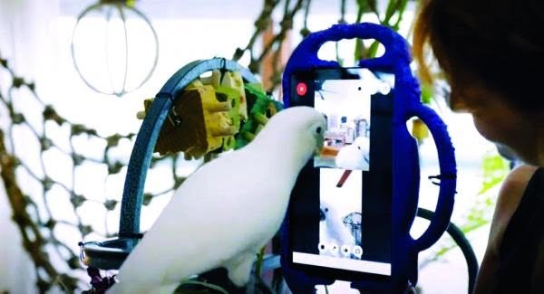 واشتملت التجربة على تعلم الببغاوات قرع الجرس الذي من شأنه أن يؤدي إلى قيام مقدم الرعاية بإحضار جهاز لوحي، لتستخدم الطيور مناقيرها لاختيار صورة لطائر آخر على الشاشة، ثم تبدأ مكالمة فيديو.