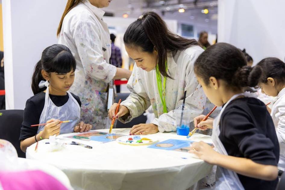 رسوم على الزجاج ولعب بالألوان في «الشارقة القرائي للطفل»
