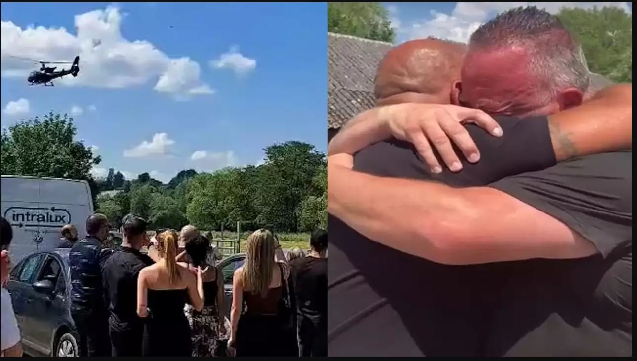 وشارك أحد مستخدمي المنصة الاجتماعية ممن حضروا الجنازة لقطات للمروحية وهي تهبط في حقل يتجمع فيه الأصدقاء والعائلة، حيث هرع الكثيرون لتحية بيرتن واحتضانه أثناء خروجه منها. كما شارك صديقه المقرب توماس فاوت مقطع فيديو للرجلين وهما يتعانقان بعد لم شملهما، مع تعليق على المقطع العاطفي “لقد حصلت علينا”.