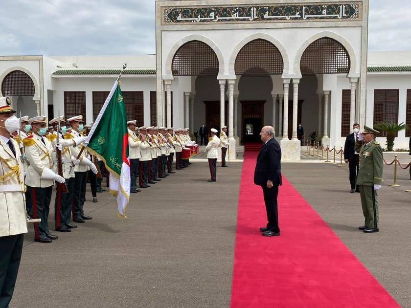 ونشرت الرئاسة على موقعها في فيسبوك، صوراً لتبون في المطار وهو يحيي تشكيلة من الحرس الجمهوري قبل صعود الطائرة.