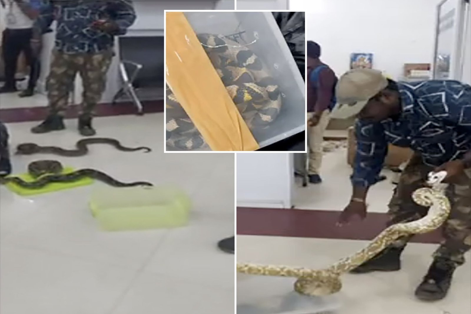 وأظهرت الصور ولقطات الفيديو التي نشرها المجلس الهندي المركزي للضرائب غير المباشرة والجمارك على وسائل التواصل الاجتماعي عدة ثعابين كبيرة معبأة في حاويات بلاستيكية شفافة يبدو أنها مغلقة بشريط لاصق. واكتشف ضباط الجمارك الحيوانات في أثناء تفتيش أمتعة المسافرة في أثناء مرورها عبر الجمارك في مطار تشيناي.