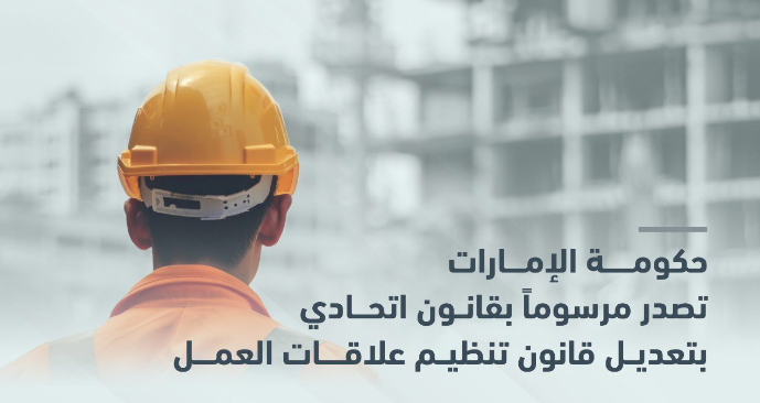 أصدرت حكومة دولة الإمارات مرسوماً بقانون اتحادي بتعديل بعض أحكام المرسوم بقانون اتحادي بشأن تنظيم علاقات العمل، في إطار التطوير المتواصل للبنية التشريعية في الإمارات، ويهدف إلى ضمان كفاءة سوق العمل في الدولة وتعزيز تنافسيته.