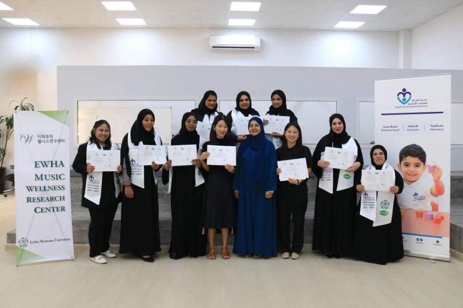 خرّجت مدينة الشارقة للخدمات الإنسانية الدفعة العاشرة من كادرها ضمن «برنامج العلاج بالموسيقى» الذي تنظمه منذ العام 2013، بالتعاون مع جامعة «إيوا» من كوريا الجنوبية والجمعية الكورية للعلاج بالموسيقى بكوريا، وكرمت المعلمات والاختصاصيات اللاتي استفدن من التدريب والتأهيل في إطار البرنامج.
