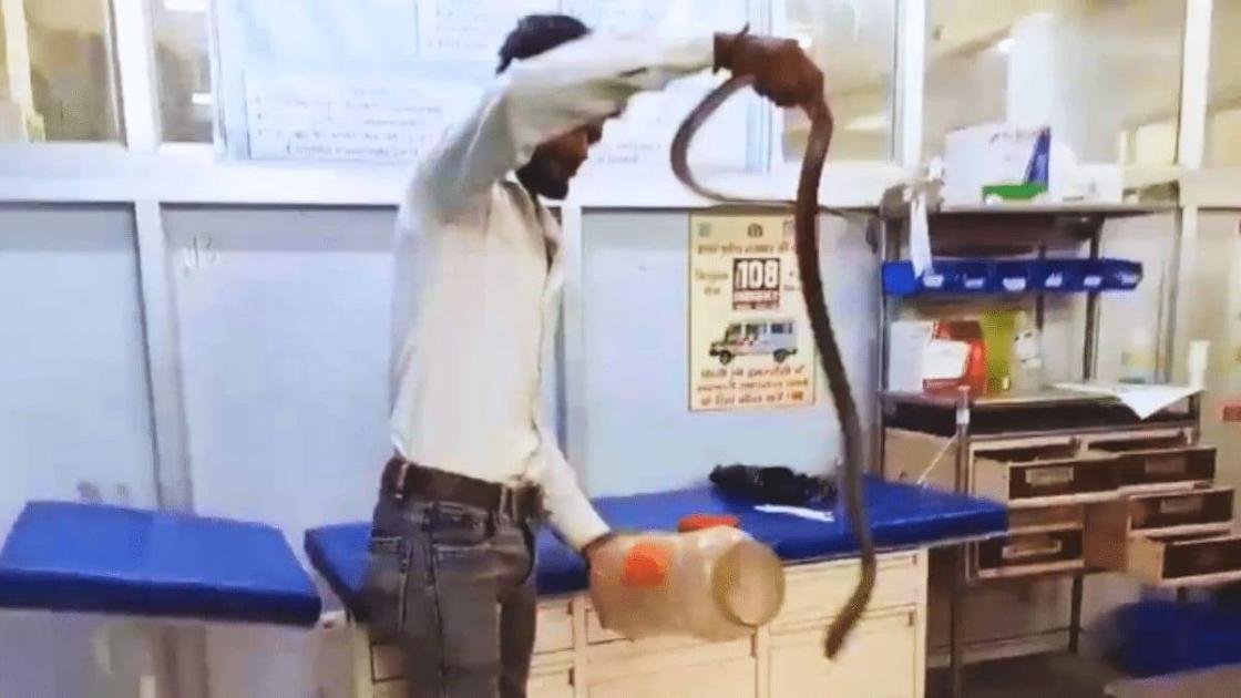 شهدت مدينة ميرزابور الهندية واقعة غير مألوفة، حيث تعرض رجل لعضة ثعبان، فاصطاده وذهب به إلى المستشفى.