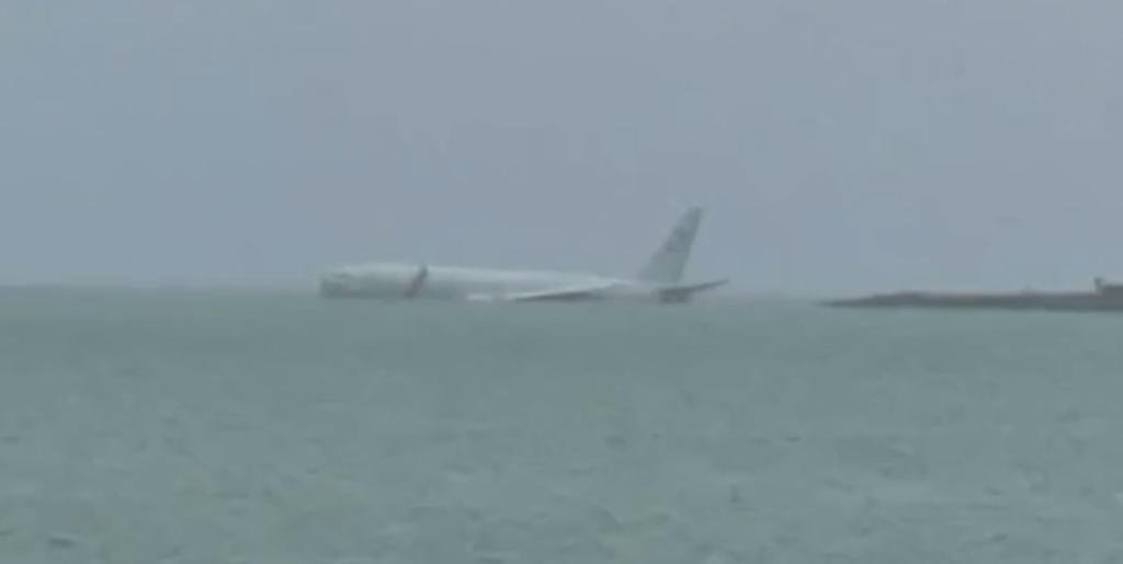 وشوهدت الطائرة بعد الحادث، مغمورة جزئياً في المياه الضحلة، كما أظهرت لقطات فيديو نشرت على منصة «إكس».
