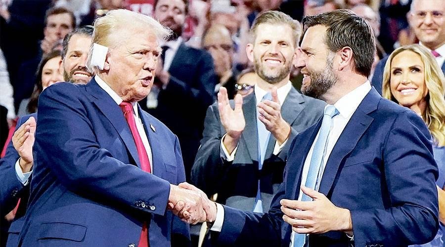 واصل الرئيس الأمريكي السابق دونالد ترامب، أمس الثلاثاء، المشاركة في المؤتمر الوطني للحزب الجمهوري، بعد محاولة اغتياله في تجمع انتخابي بولاية بنسلفانيا، السبت الماضي، فيما فجر مرشحه لنائب الرئيس جاي دي فانس، أزمة سياسية مع بريطانيا، أقرب حلفاء الولايات المتحدة، بعدما قال: «إن بريطانيا أول دولة إسلامية مسلحة نووياً»، بينما لم يخف الديمقراطيون استياءهم من هذا الاختيار.