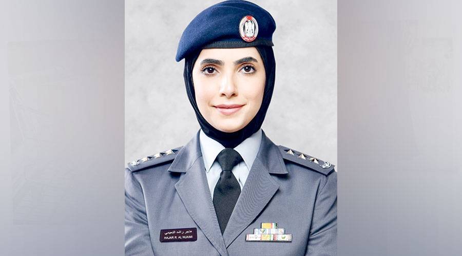 يُذكر أن النقيب هاجر راشد النعيمي، خريجة ماجستير آداب الدبلوماسية بدرجة امتياز مع مرتبة الشرف، وتحمل شهادة البكالوريوس في إدارة نظم المعلومات، وبدأت مسيرة عملها من خلال فحص الأدلة الجنائية الإلكترونية، ثم مدير فرع التدريب الدولي بمركز المشاركات والتعاون الدولي، ورئيس قسم التدريب الافتراضي في أكاديمية سيف بن زايد للعلوم الشرطية والأمنية، وحصلت على عدد من الجوائز المتميزة، منها جائزة القائد العام كأفضل ضابط بشرطة أبوظبي في المجال الفني والتقني، وشاركت في العديد من المؤتمرات والمعارض المحلية والدولية، وكان لها دور بارز في مجلس شباب شرطة أبوظبي.