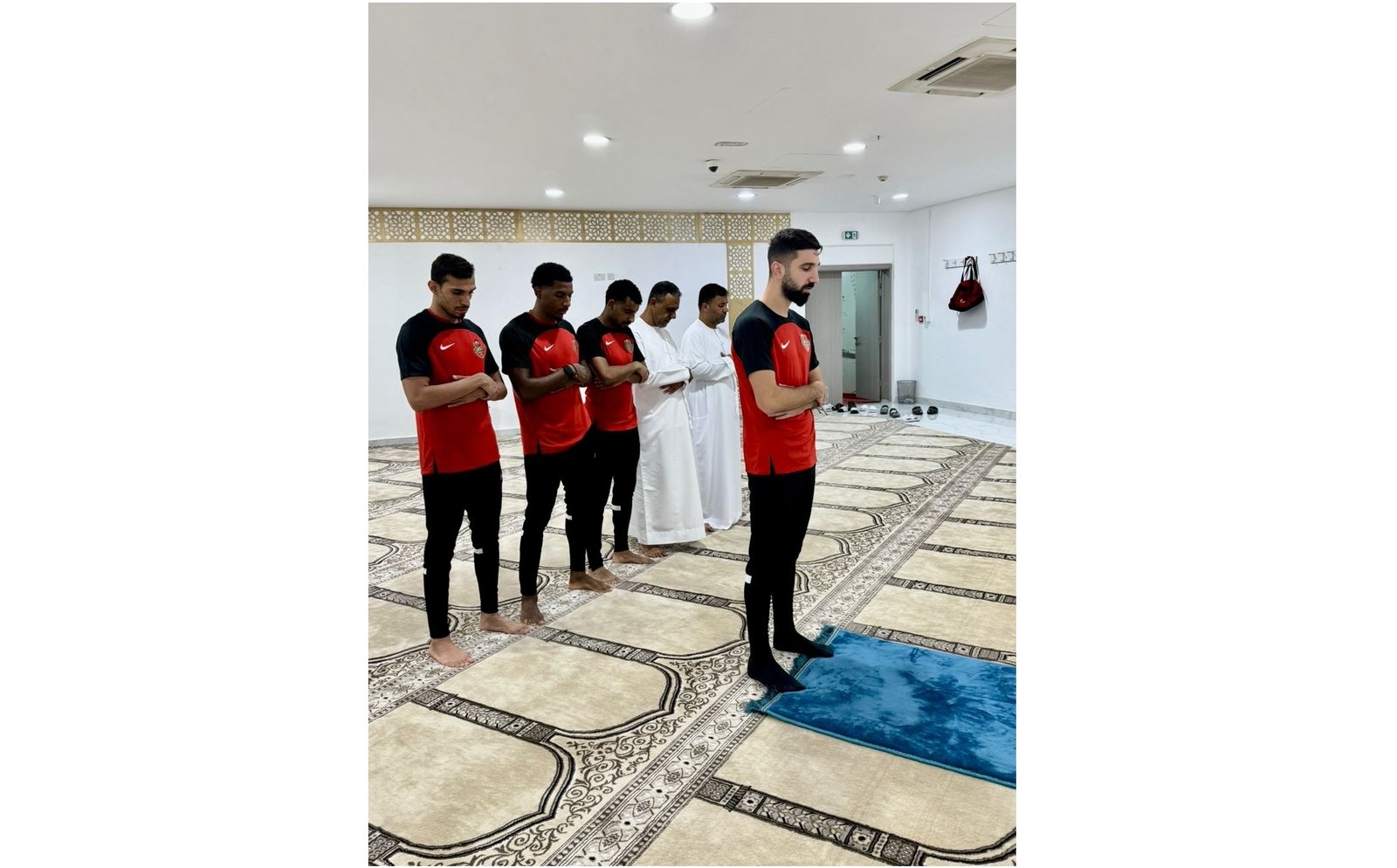 مؤنس دبور يؤم لاعبي شباب الأهلي في صلاة جماعة