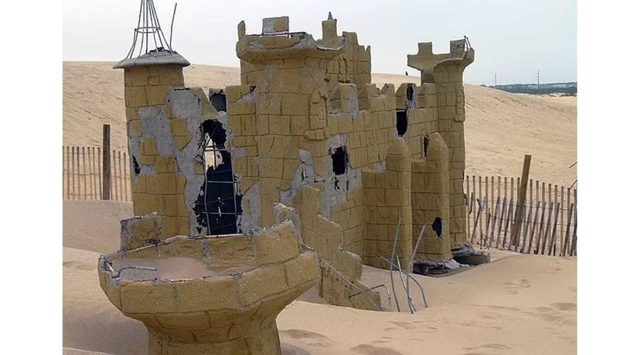 أثار البروز المفاجئ لمجسم قلعة غامضة، ارتفاعه 3 أمتار، من بين رمال شاطئ أوتر بانكس بولاية كارولينا الشمالية، حيرة الجميع ليكتشفوا في النهاية أنها بقايا قلعة صغيرة متآكلة تابعة لملعب جولف شيد عام 1978، وفقاً لصحيفة «ديلي ميل» البريطانية.