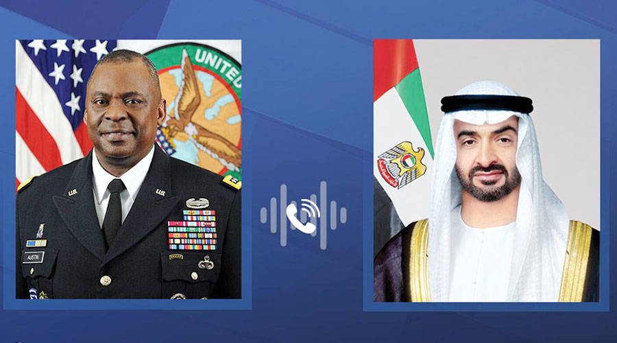 وبحث سموه والوزير الأميركي خلال الاتصال مختلف جوانب التعاون والعمل المشترك بين دولة الإمارات العربية المتحدة والولايات المتحدة في المجالات والشؤون الدفاعية في إطار العلاقات الاستراتيجية التي تجمع البلدين وتناولا تطورات الأوضاع الخطيرة التي تشهدها المنطقة والتصعيد الذي يهدد باتساع دائرة العنف وعدم الاستقرار الذي يزعزع الأمن في منطقة الشرق الأوسط ويقوض فرص تحقيق السلام فيها.