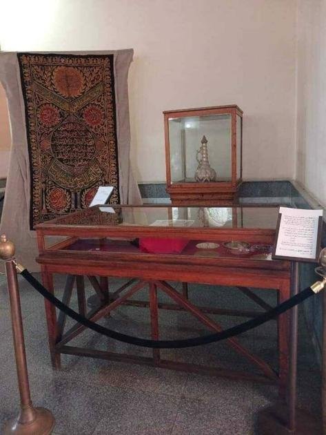 ويضم المعرض، الذي يستمر أسبوعين، عدداً من القطع الأثرية النادرة والمتنوعة، من بينها ستار للحرم النبوي الشريف، يرجع للقرن الثالث عشر للهجرة سنة 1241 هجرية، وصُنع بأمر من السلطان الغازي محمود خان ابن السلطان عبد الحميد خان، وأسطرلاب من المعدن كان يستخدم في معرفة بداية السنة الهجرية والشهور القمرية وحركة الأبراج والكواكب والنجوم.