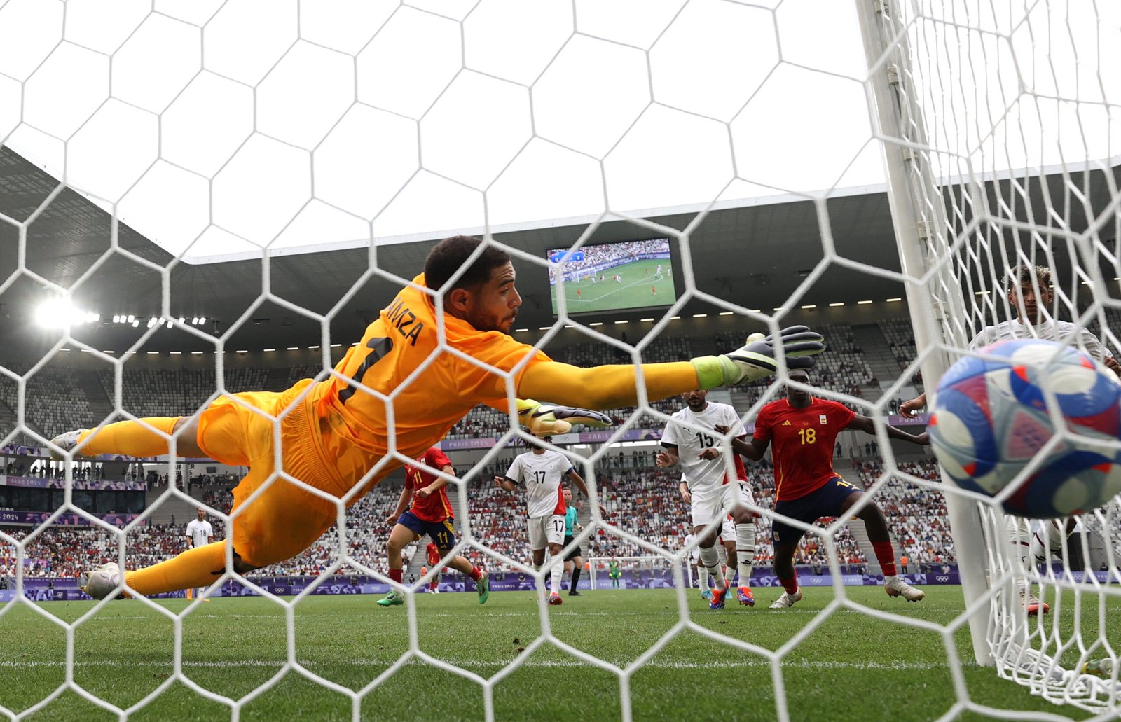 لحق منتخب مصر بإسبانيا الى ربع النهائي عندما تغلب عليها 2-1 في بوردو في الجولة الثالثة الاخيرة من منافسات المجموعة الثالثة لمسابقة كرة القدم في دورة الألعاب الأولمبية في باريس.