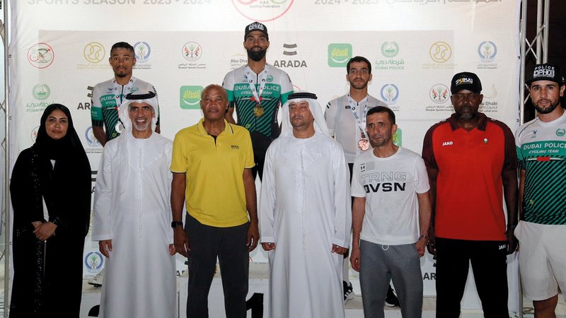 فاز دراج فريق شرطة دبي أحمد البلوشي بسباق الحديريات للدراجات في أبوظبي الذي أقيم لمسافة 68 كم بمشاركة 94 دراجاً…
