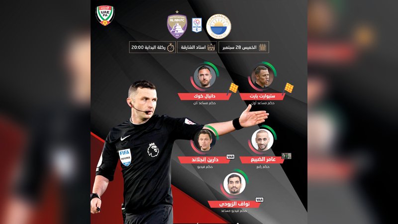 طاقم تحكيم إنجليزي يدير قمة الشارقة والعين في الدوري