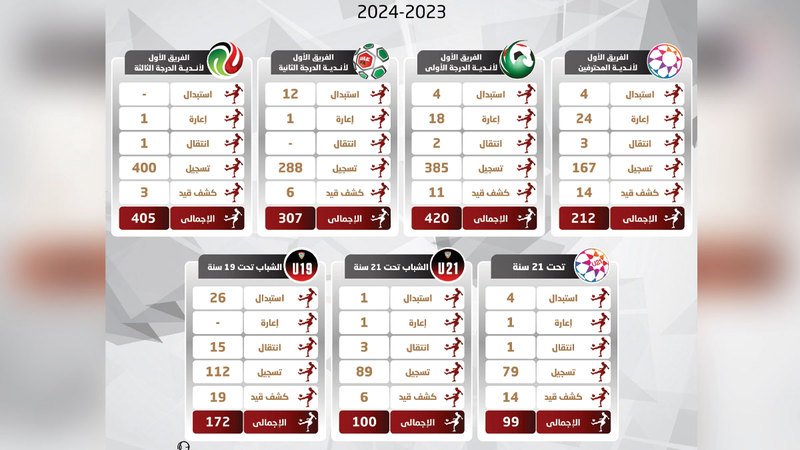 إجراء 1715 معاملة مع انتهاء الفترة الصيفية لقيد وتسجيل اللاعبين