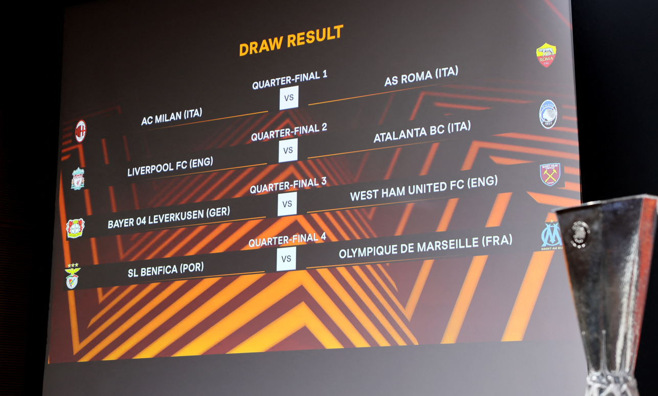 ميلان يواجه روما.. وليفربول مع أتالانتا في ربع نهائي الدوري الاوروبي