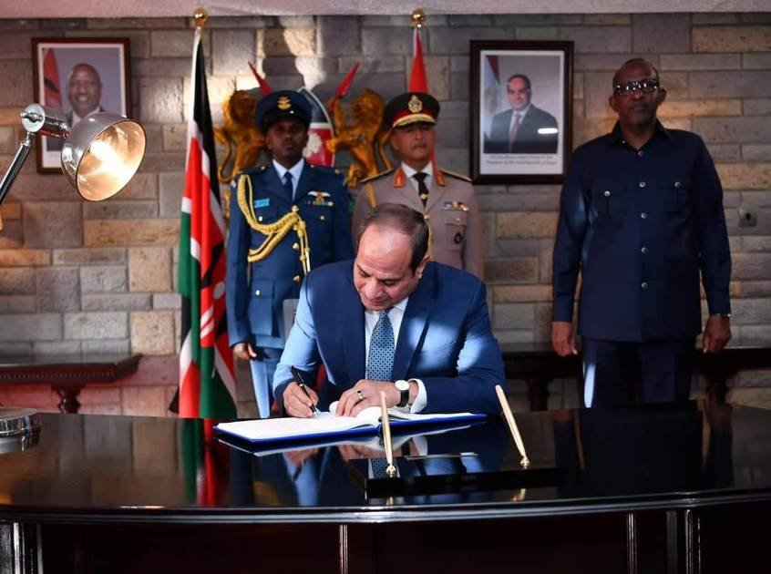 نشر المتحدث باسم الرئاسة المصرية أحمد فهمي، صوراً للرئيس عبد الفتاح السيسي يكتب رسالة بسجل الزائرين، في مستهل زيارته لكينيا.…