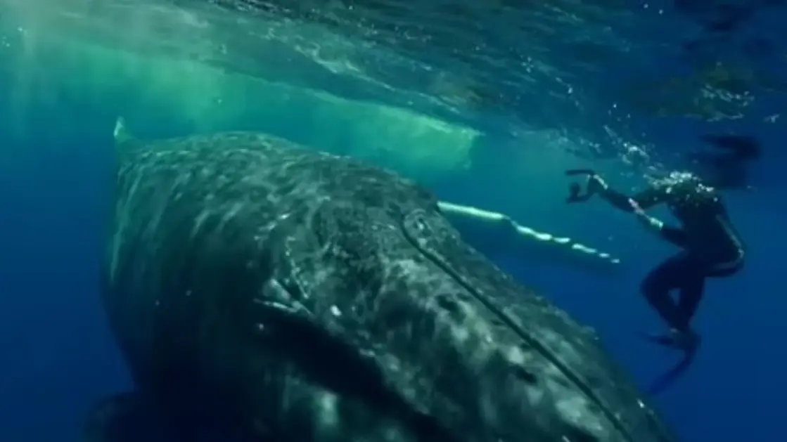 فيديو.. لحظة مذهلة لحوت أحدب ينقذ عالمة أحياء من هجوم قرش