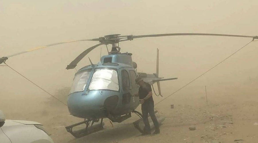 السعودية..عاصفة ترابية تجبر مروحية على الهبوط اضطرارياً