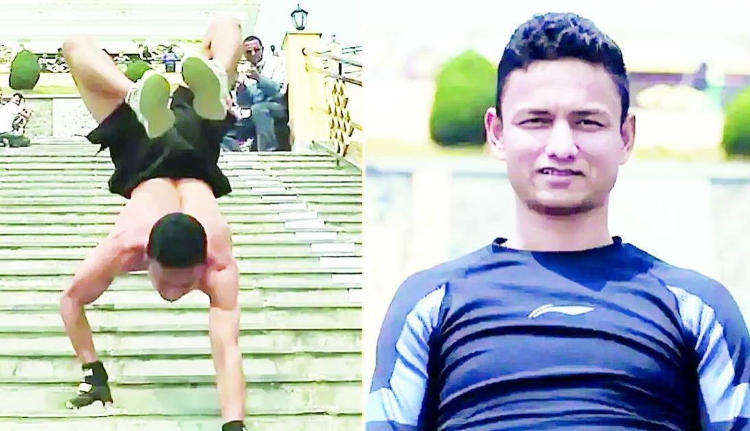 سجل النيبالي هاري شاندرا جيري، 29 عاماً رقمه القياسي العالمي الرابع في موسوعة «غينيس» بالنزول عبر 75 درجة على يديه…