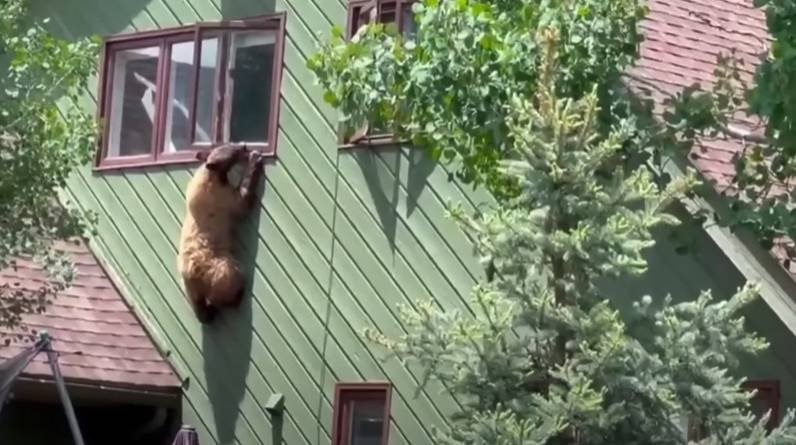 فيديو| دب شعر بالخطر فهرب من نافذة منزل