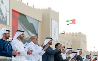 شهد صاحب السمو الشيخ محمد بن زايد آل نهيان رئيس الدولة “حفظه الله” وضيوف دولة الإمارات وسمو الشيوخ اليوم السبت، “مسيرة…