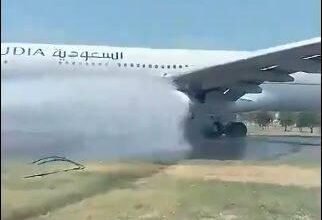 بالفيديو | اشتعال حريق بطائرة للخطوط السعودية في مطار بيشاور الباكستاني