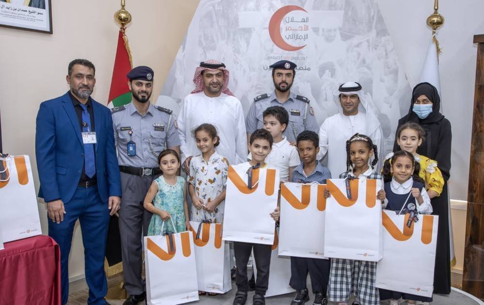 شرطة أبوظبي و«الهلال الأحمر» توزعان هدايا مدرسية ضمن «أبناؤنا أمانة»