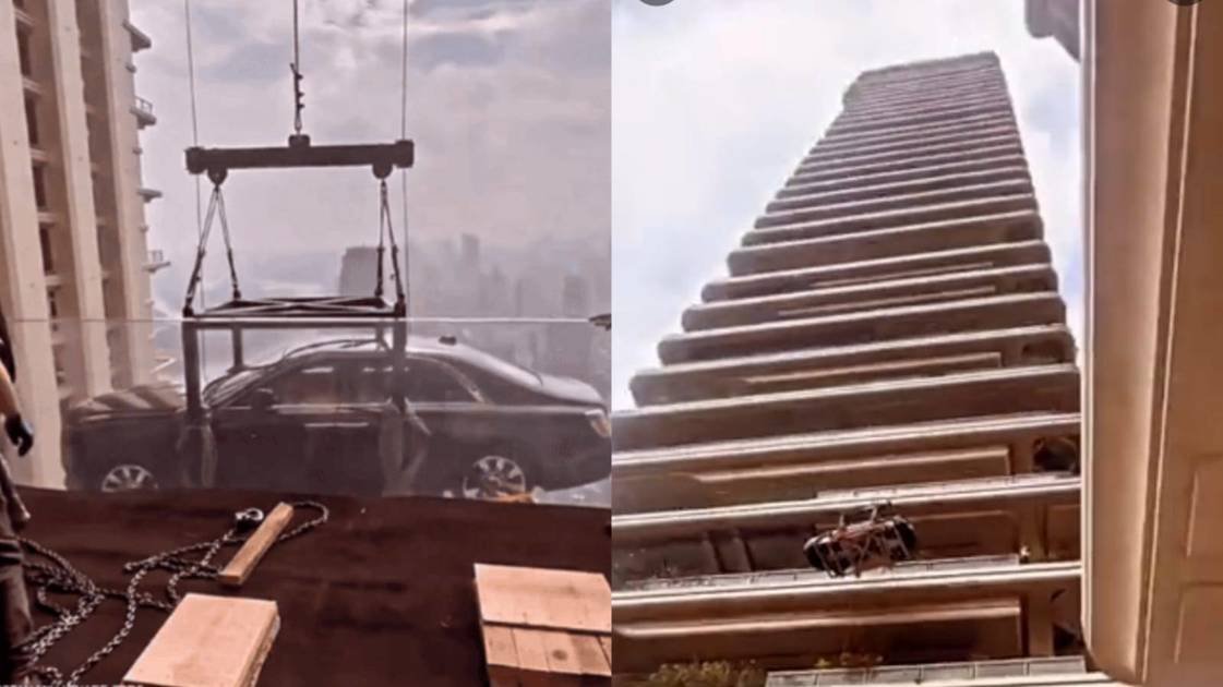 فيديو| ملياردير صيني يرفع «رولز رويس» لشقته بالطابق 44