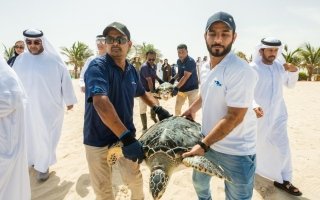 “الشارقة للأحياء المائية” يعيد 8 سلاحف مهددة بالانقراض إلى موطنها الأصلي
