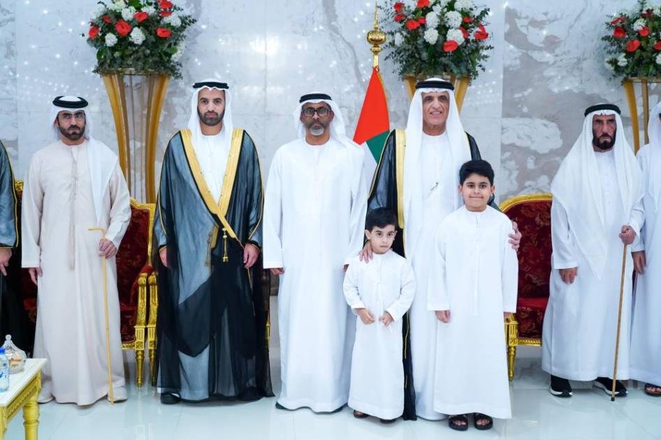سعود بن صقر يستقبل المهنئين بعيد الفطر في مجلس الضيافة بخزام