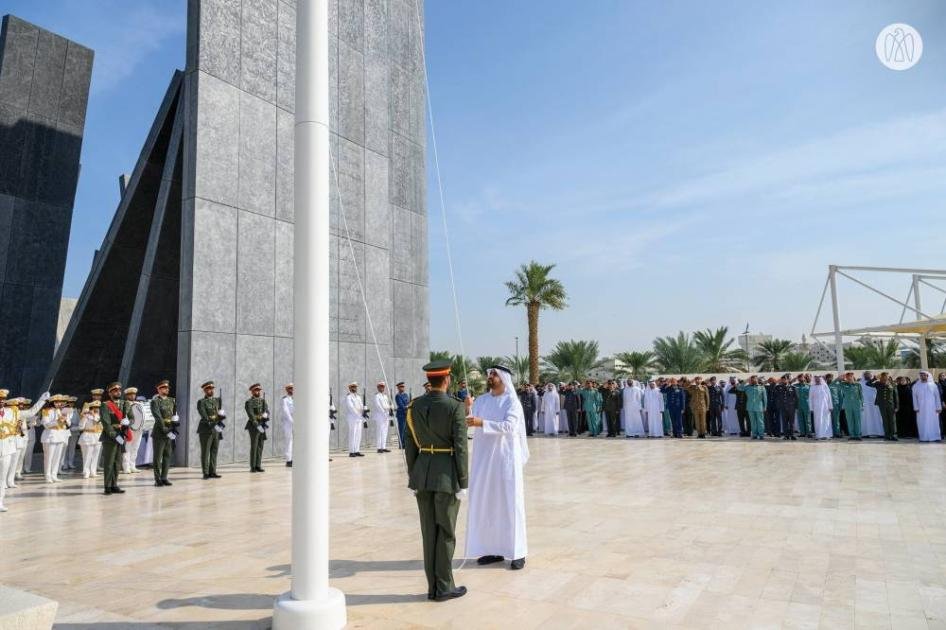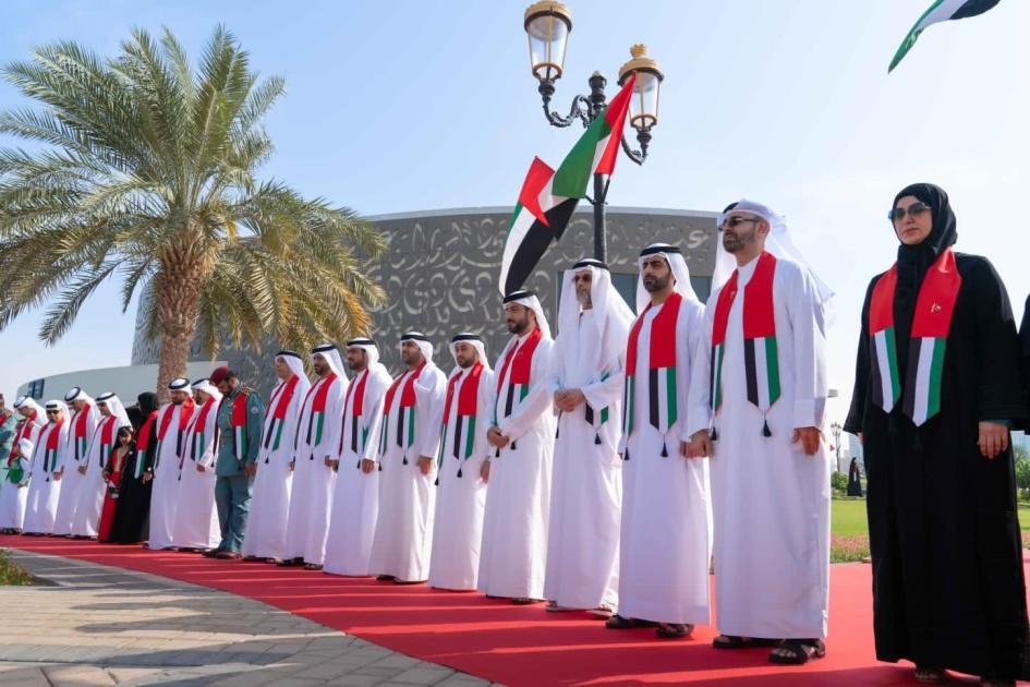 ذياب بن محمد بن زايد يرفع علم الإمارات في واحة الكرامة احتفالاً بيوم العلم