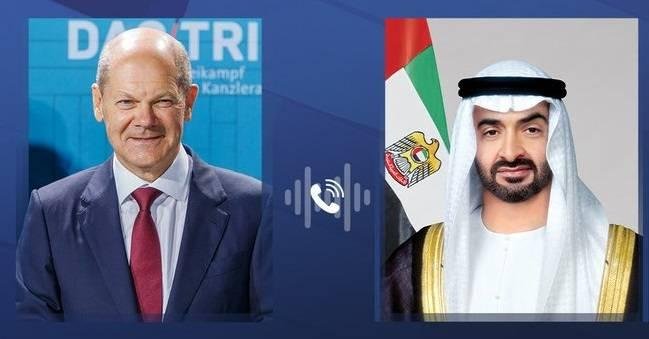 محمد بن زايد وشولتس يبحثان هاتفياً جهود الاستجابة للأوضاع الإنسانية في غزة
