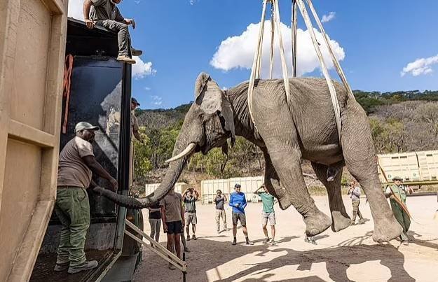 بالصور| نقل الأفيال.. أطنان في الهواء تتلقاها الشاحنات