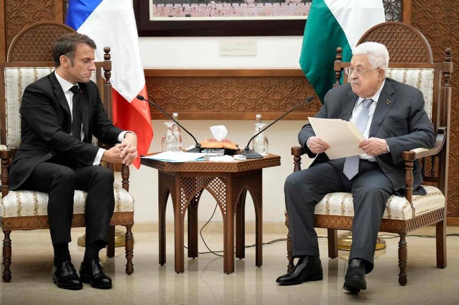 ماكرون: لا شيء يبرر معاناة المدنيين بغزة.. وعباس: نناشدكم وقف العدوان