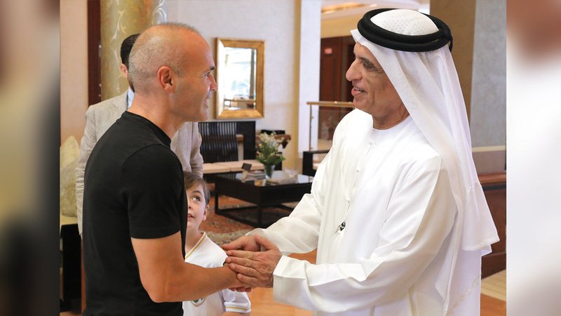سعود بن صقر يستقبل لاعب نادي الإمارات أندريس إنييستا