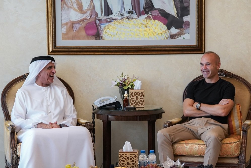 سعود بن صقر يستقبل لاعب نادي الإمارات إنييستا