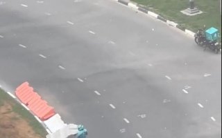 فيديو.. حدث غير متوقّع لعامل “ديليفري” في دبي أزاح عوائق مرورية من وسط الطريق