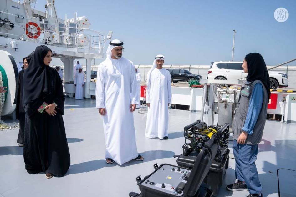 خالد بن محمد بن زايد يطلع على المختبرات العلمية بسفينة الأبحاث «جيّوَن»