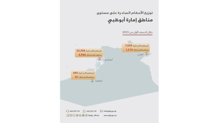 محاكم أبوظبي تصدر 37536 حكماً قضائياً خلال النصف الأول من 2023